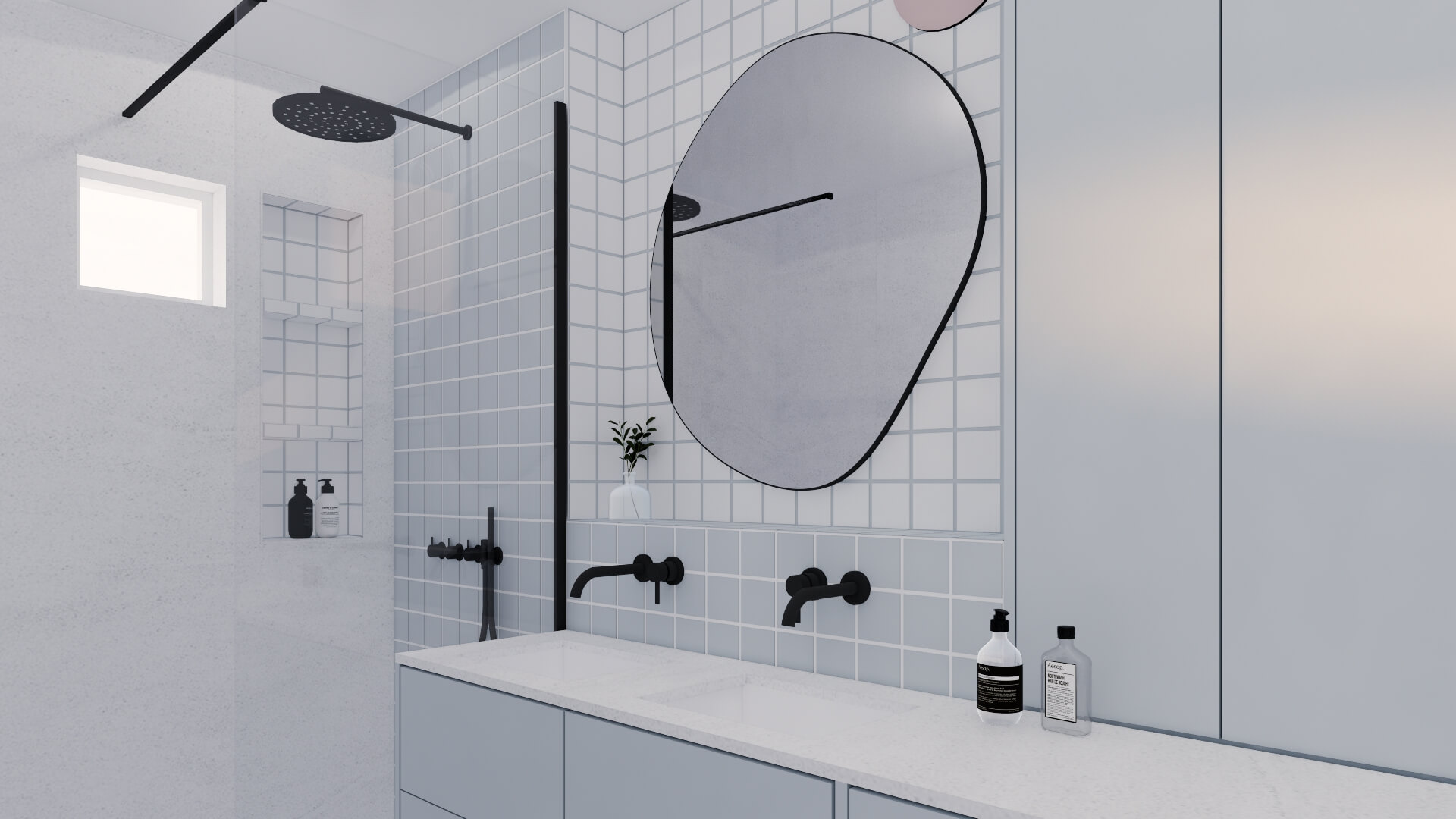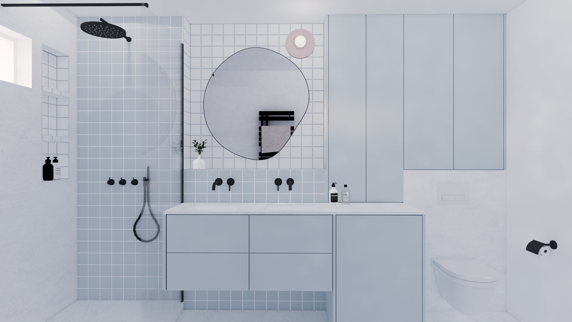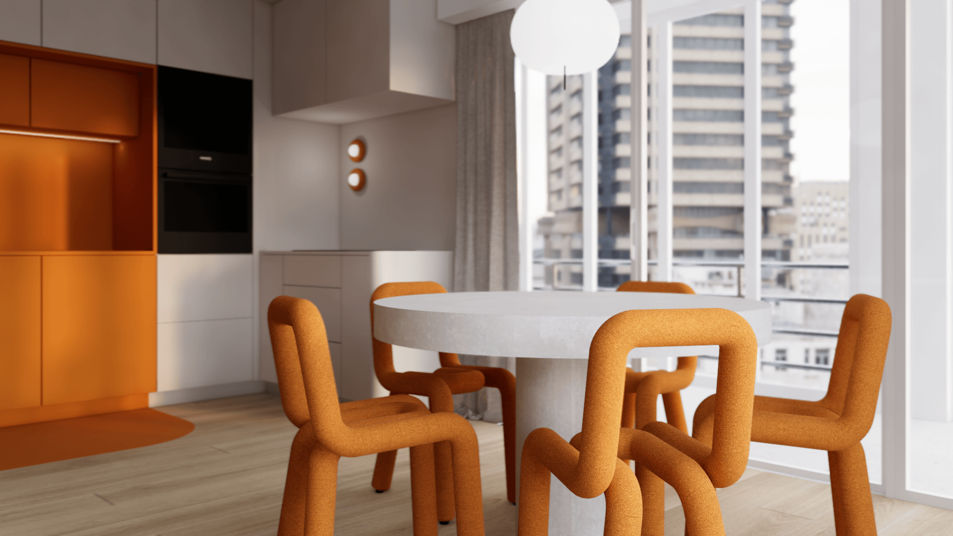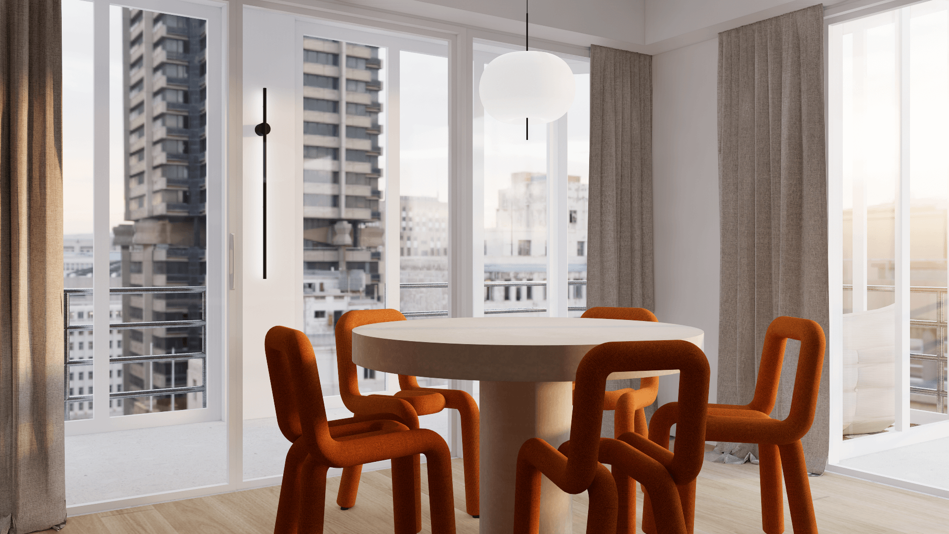 Dans un appartement 2 pièces tout en longueur de 70m² avec 11m² supplémentaires de loggia, l'objectif principal était de réagencer l'espace :