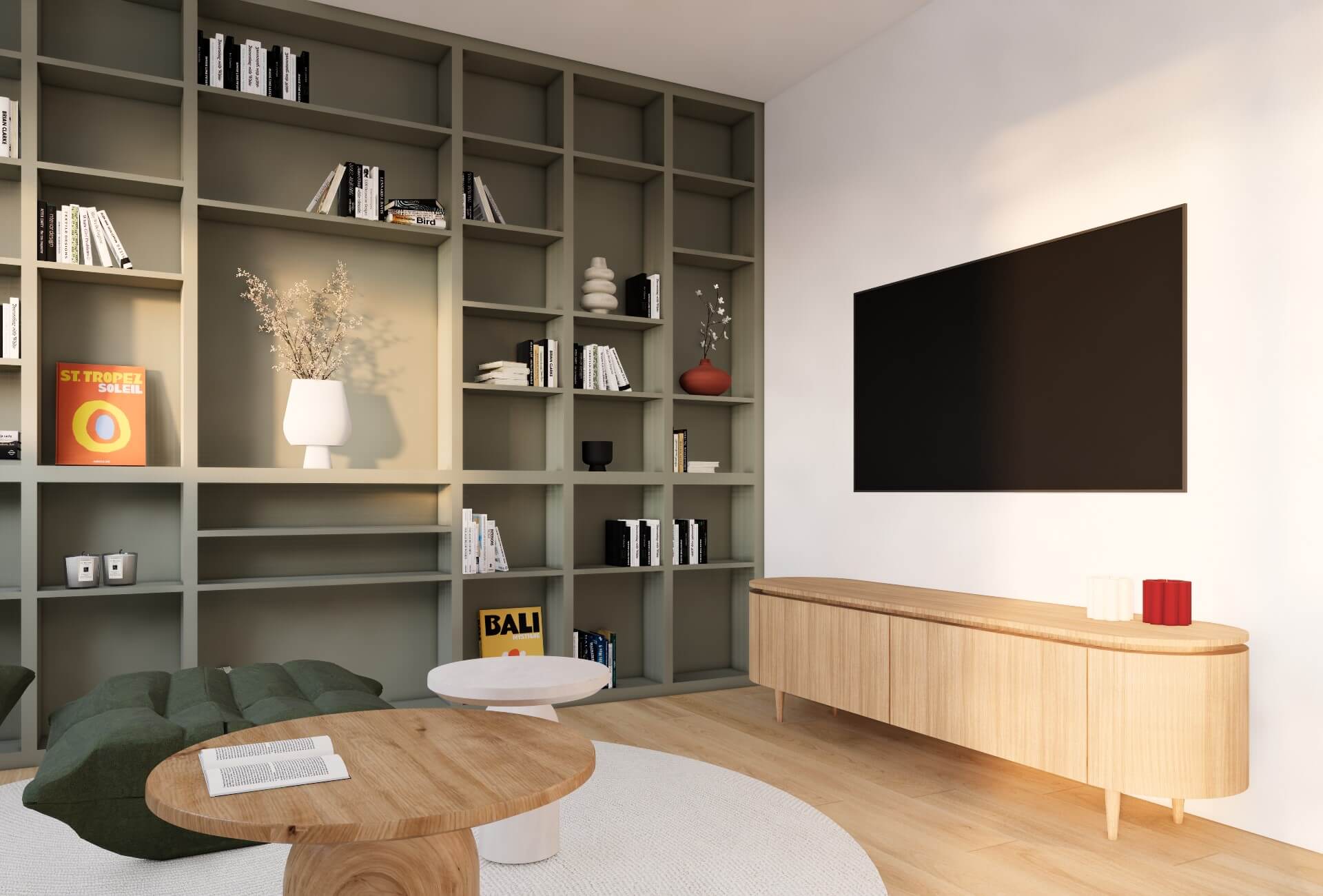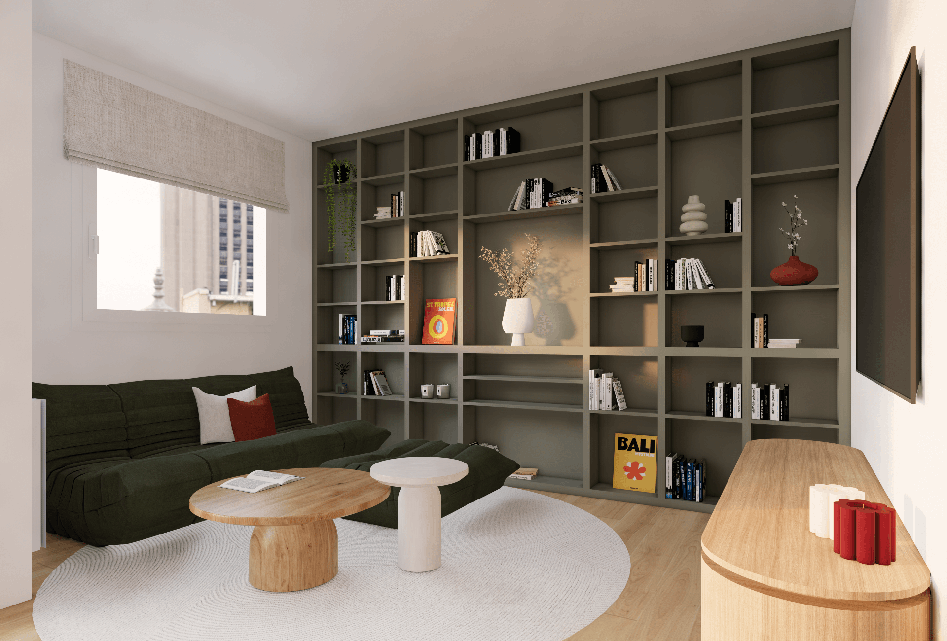 - Un salon "cosy" avec une bibliothèque existante