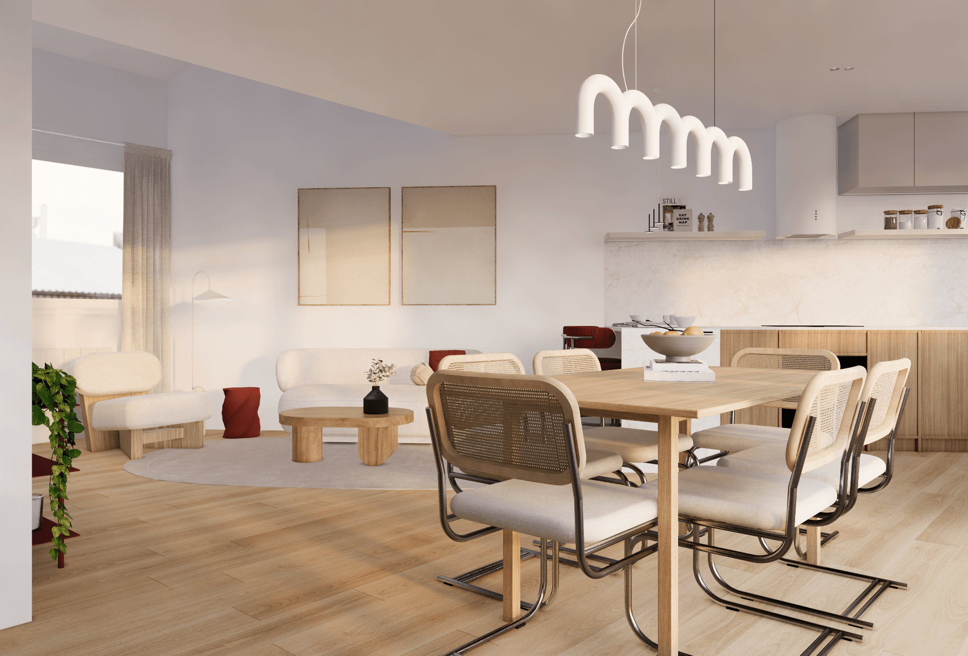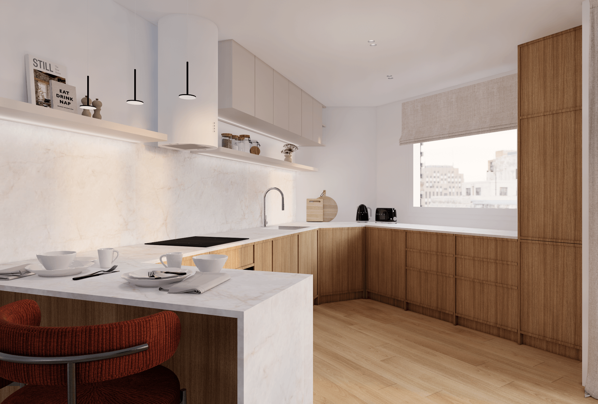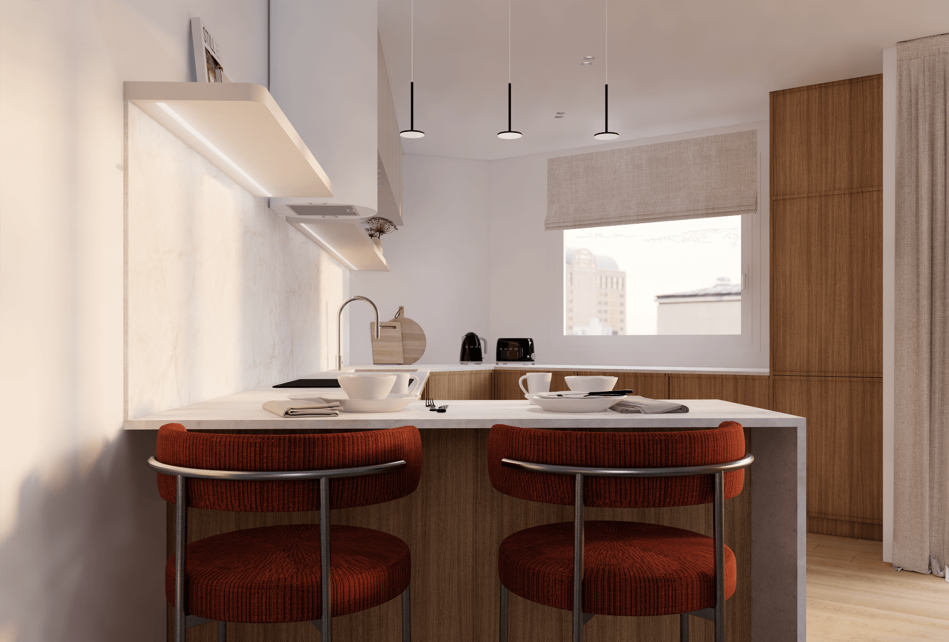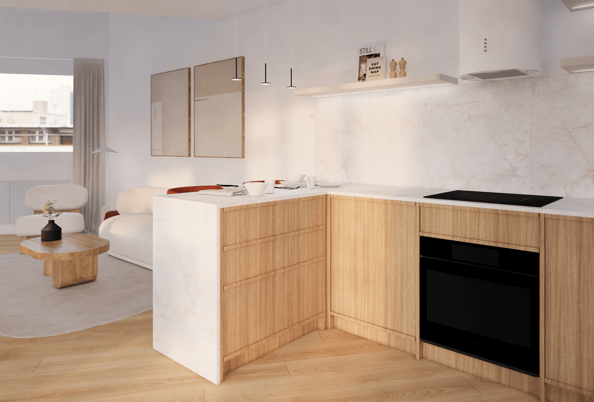 - Une cuisine avec un espace repas